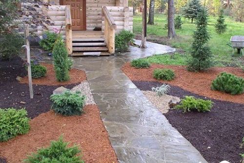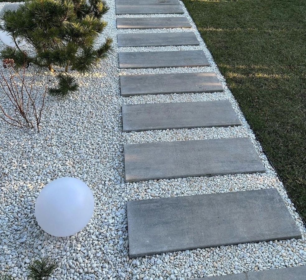Дорожки делают из природного камня – гранита, мрамора, сланца, гальки, песчаника, шунгита и прочих пород, а также из имитирующего вид натурального искусственного камня. Тропинки могут засыпаться каменной крошкой.